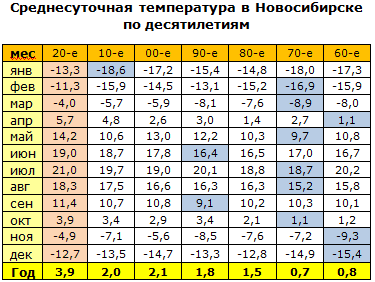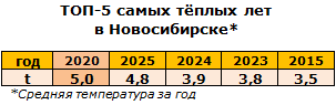 В отдельно взятом Новосибирске сей процесс подкреплён сногсшибательной статистикой: в двадцатых годах нового века ВСЕ 12 МЕСЯЦЕВ – самые тёплые в новейшей погодной истории Новосибирска в разрезе последних семи десятилетий.