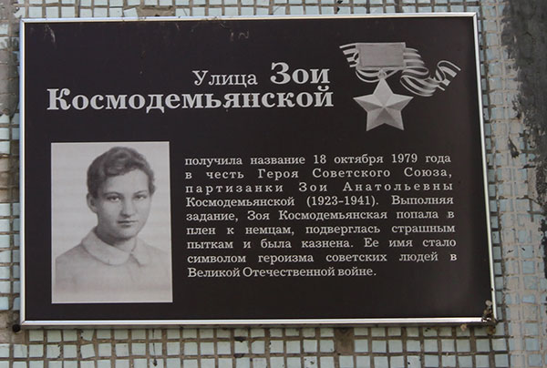 Вторую большую группу составляют улицы, названные в честь героев, которых знала вся страна из средств массовой информации, книг, фильмов, чьи подвиги вошли в школьные учебники. Это улицы имени Зои Космодемьянской, Александра Матросова, Николая Гастелло, юного партизана Саши Чекалина, Ивана Панфилова, Мусы Джалиля, советского разведчика Рихарда Зорге, железнодорожника Константина Заслонова, молодогвардейцев Ивана Земнухова, Олега Кошевого, Сергея Тюленина, Любови Шевцовой.