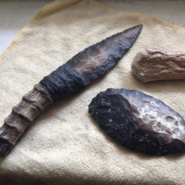 Первые ножи появились в эпоху раннего палеолита — более двух миллионов лет назад. Древние люди делали их из кремня, расщепляя крупные образования минерала и обрабатывая осколки подходящей формы. Позднее к острым кремневым отщепам добавили рукоять из дерева или слоновой кости, что превратило нож в универсальный и многофункциональный инструмент. Его использовали в хозяйстве, для охоты и еды, разрезали мясо, рыбу и другие продукты.
