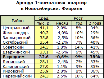 За последний год среднее предложение в Новосибирске выросло примерно на две тысячи рублей в месяц. Максимально - в Железнодорожном (+5,0 тыс.), Октябрьском (+3,5 тыс.) и Заельцовском (+3,5 тыс.) районах. Минимально – в Дзержинском (+0,5 тыс.) и Ленинском (+0,5 тыс.). А в Первомайском съём двушки сегодня обходится в среднем на 2,5 тысячи рублей в месяц дешевле, чем год назад.