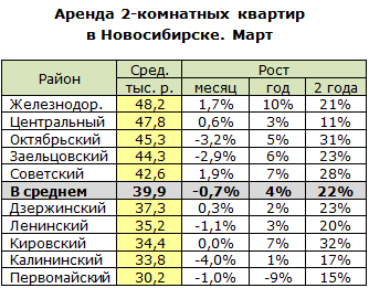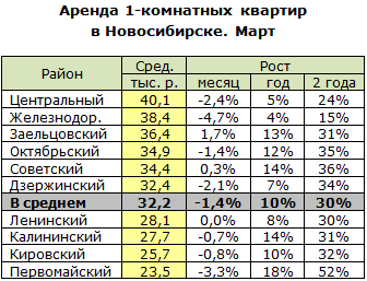 За минувший год среднее арендное предложение в городе выросло примерно на 2,9 тысячи рублей в месяц. Максимально – в Советском (+4,5 тыс./мес.) и Заельцовском (+4,5 тыс.) районах. Минимально выросли запросы собственников жилья в двух центровых районах – Железнодорожном (+1,5 тыс.) и Центральном (+2,0) и примкнувшем к ним Ленинском (+2,0).