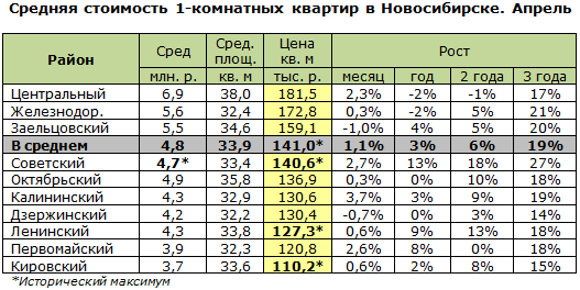 В трёх районах – Советском, Ленинском и Кировском – в апреле стоимость квадратного метра жилья поднялись до своего исторического максимума. Причём в Ленинском – восьмой месяц подряд, с сентября прошлого года. В Советском районе собственники жилья поднимают планку до максимума четыре месяца подряд. И средняя цена в городе впервые после ноября прошлого года добралась до новой рекордной высоты.